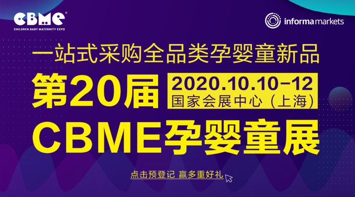 2020 CBME上海将于10月10-12日在国家会展中心(上海)举办。为满足后疫情时代母婴行业上下游产业及创业者、中小投资者的需求,2020 CBME 中国将设立各大亮点活动,助力业内人士把握行业复苏机遇,挖掘投资新打法。