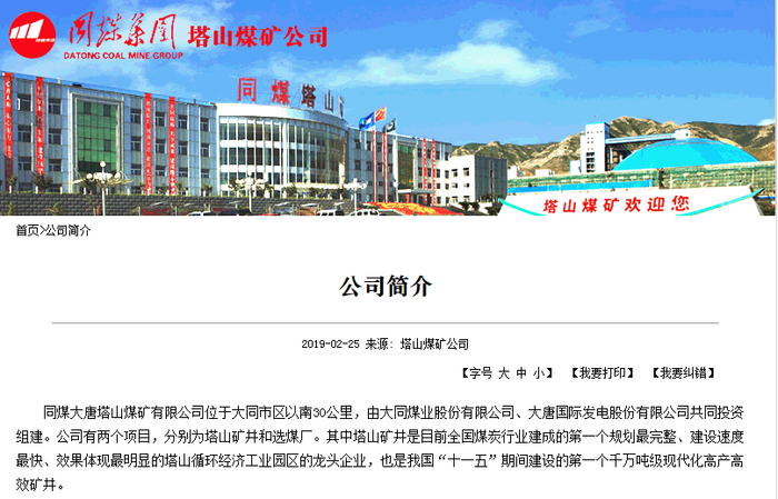 同煤集团官网显示,塔山矿井是目前我国煤炭行业建成的第一个规划最完整、建设速度最快、效果体现最明显的塔山循环经济工业园区的龙头企业,也是我国“十一五”期间建设的第一个千万吨级现代化高产高效矿井。