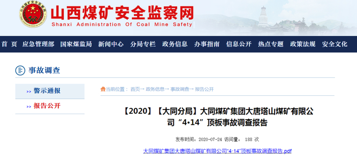 19时02分,同煤集团总调度室上报山西煤矿安全监察局大同监察分局。