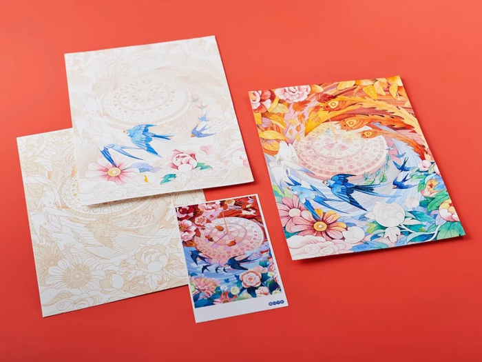 10张水彩涂色页,满满的故宫味;10张明信片,十分漂亮。