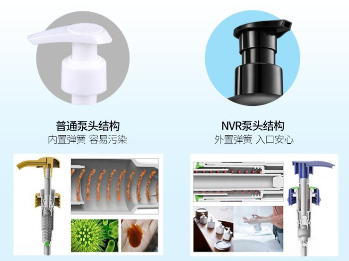 它在泵头的结构设计上采用外置弹簧,密封性也很好,每一次用就跟打开一瓶新的牙膏一样~