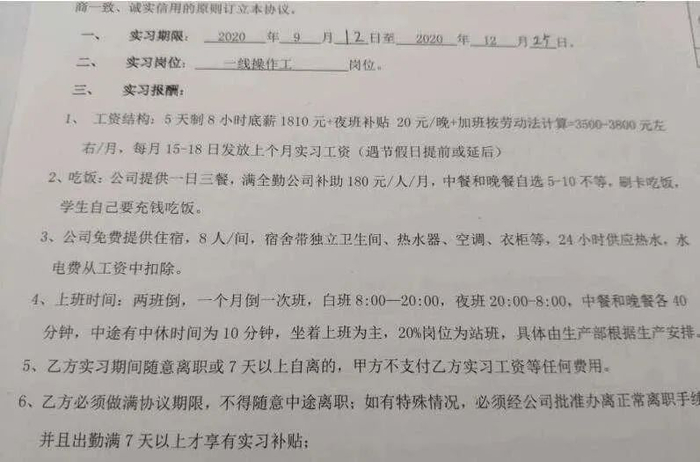 在不到一周的时间内,此次前去实习的学生已有一半离开了实习岗位。