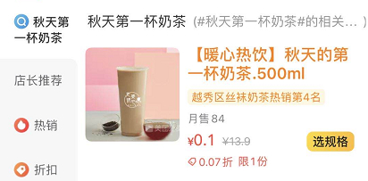 1、就是借着秋天来了要了杯奶茶的红包,定义为秋天第一杯奶茶来秀恩爱。