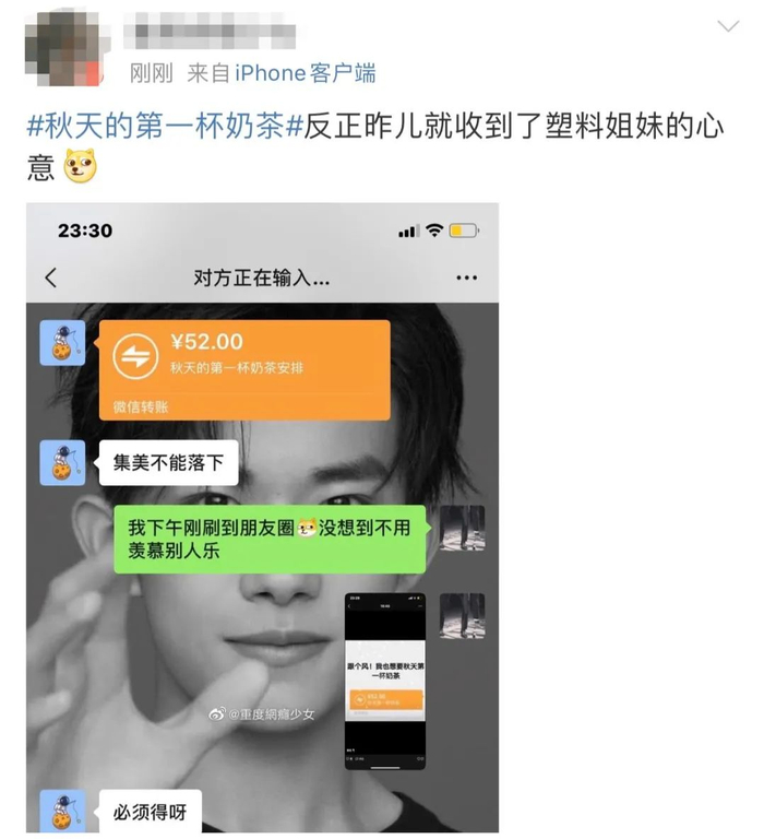 原标题:“秋天的第一杯奶茶”是什么梗?朋友圈里都在发!各种画风清奇...