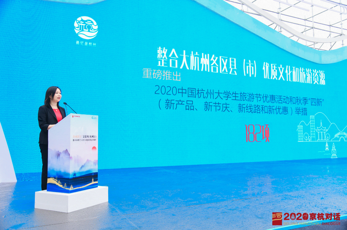 活动现场,杭州市文化广电旅游局党组书记、局长楼倻捷发布迎国庆暨秋季“四新”文旅产品,为更多人展示杭州的历史与现代交融的独特韵味。