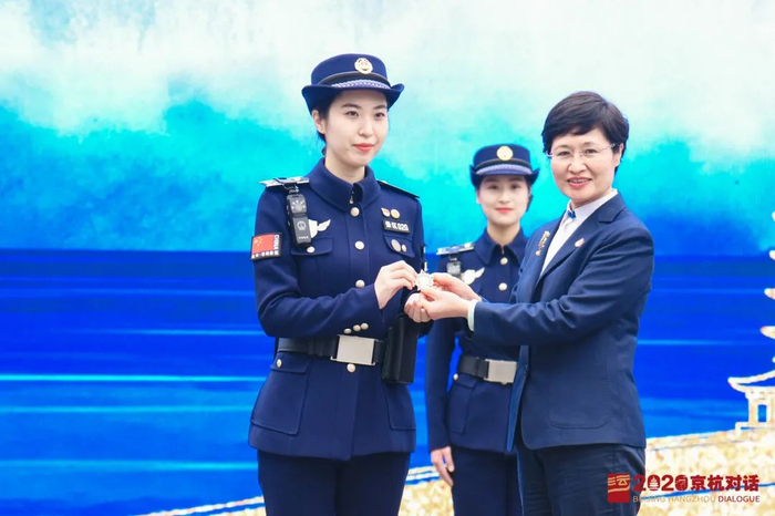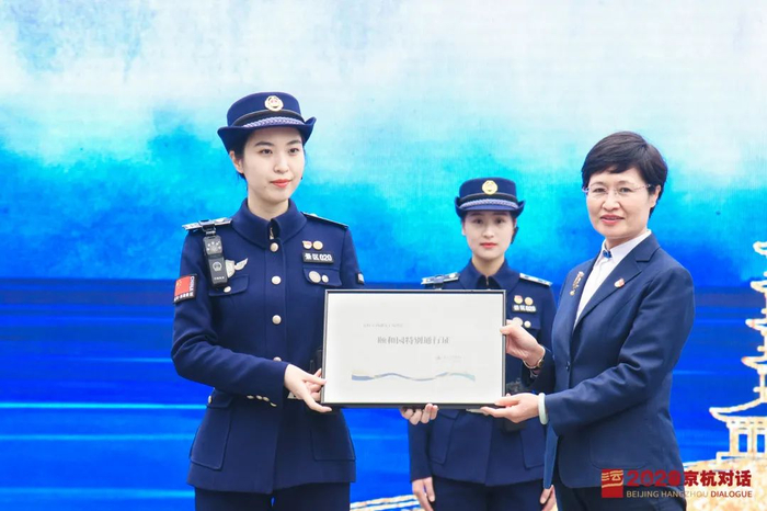 作为西子湖畔的“人文风景线”,杭州西湖女子巡逻队也来到颐和园昆明湖畔。活动现场,颐和园党委书记马文香为西湖女子巡逻队颁发徽章和“颐和园特别通行证”。
