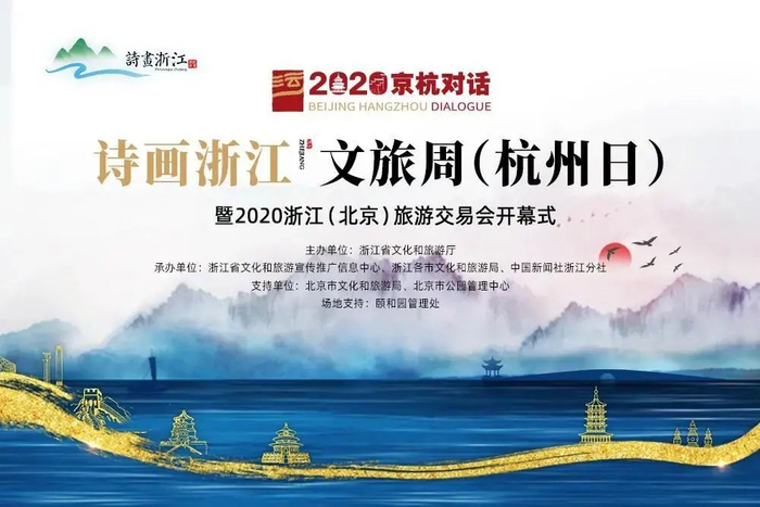 据悉,诗画浙江文旅周(杭州日)暨2020浙江(北京)旅游交易会开幕式由浙江省文化和旅游厅主办,浙江省文化和旅游宣传推广信息中心、浙江各市文化和旅游局、中国新闻社浙江分社承办。