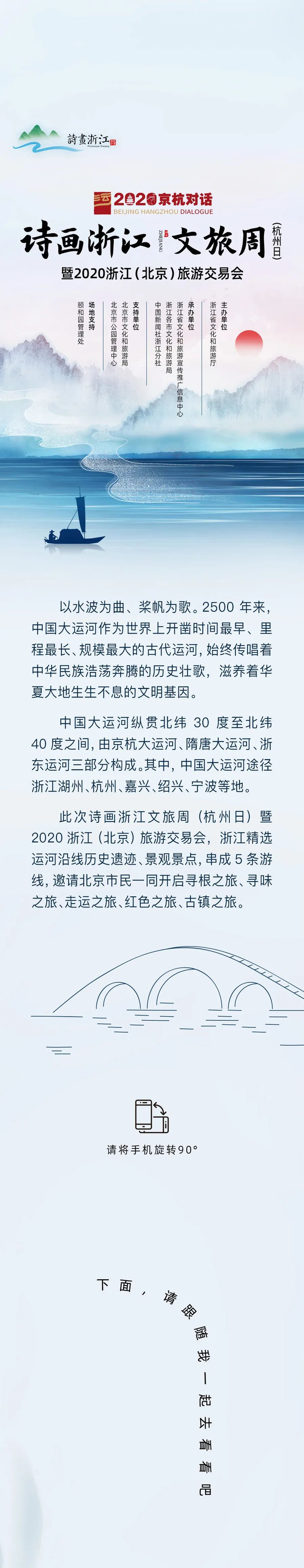 作为2020中国大运河文化带京杭对话重要活动之一,本次活动于线上线下同时举行,展期共三天。尽展诗画浙江魅力、续写京浙人文佳话、助推跨省游复苏。
