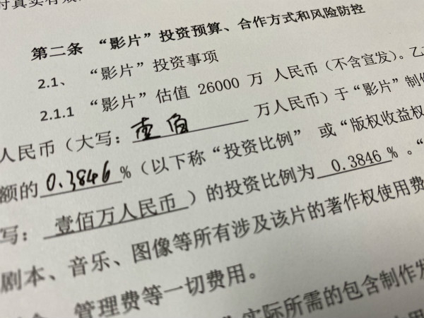 这名中介还一再声称,这部电影的预期票房保守估计可达20亿元,以投资100万元为例,至少可获得360万元收益,机会实属难得。