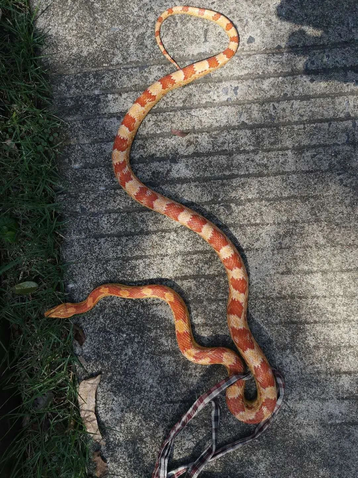 既然是外来物种,为何会出现在小区附近呢?郑从容推断,因为玉米锦蛇无毒且颜色鲜艳,不少人喜欢饲养这种蛇为宠物蛇。“现场的这条蛇呈现‘黄化’特征,明显有人工养殖的痕迹。可能是从饲养者家里偷跑出来的。”因为玉米锦蛇属于外来物种,无法放生,目前他已经这条蛇带回安徽省龙栖百鸟园进行照料。