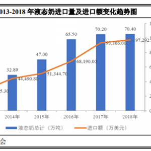 根据中国奶业协会统计,液态奶(包括 HS0401 和 HS0403)进口量从 2013年的 19.48 万吨增长至 2018 年的 70.40 万吨,年复合增长率高达 29.30%,进口额从 2013 年的 27,455.30 万美元增长至 2018 年的 97,292.80 万美元,年复合增长率达 28.79%。2013 年至 2018 年,中国酸奶进口量从 1.02 万吨增长至 3.08 万吨,年复合增长率达 24.74%,中国液态奶进口市场需求量巨大。