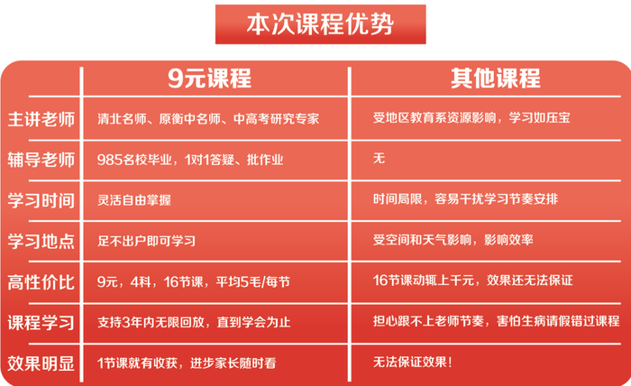9块钱=16节直播课+4科电子教辅+一对一随时答疑+专属VIP学习群!