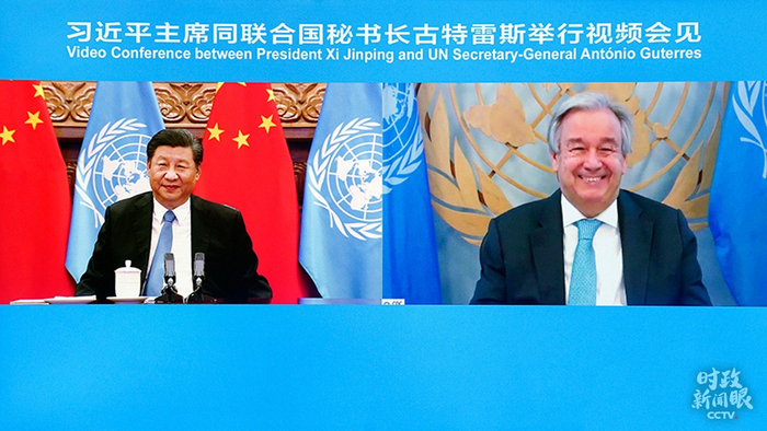 习近平主席应邀以视频方式出席联合国成立75周年系列高级别会议。21日、22日,习主席分别在纪念峰会和一般性辩论上发表重要讲话。23日晚,他以视频方式会见了联合国秘书长。