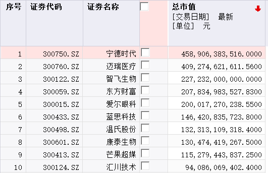 目前创业板市值一哥为宁德时代,总市值为4613.06亿元;迈瑞医疗紧随其后,总市值为3937.02亿元;东方财富排名第三,总市值为2151.28亿元。