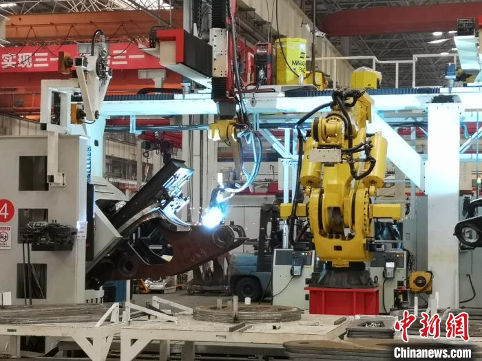 三一“18号厂房”的机器人正在焊接。 唐小晴 摄