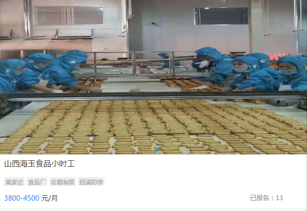 除了富士康之外,还有一个厂区最近报名的人也是特别多,那就是海玉食品厂。相信有很多朋友都吃过海玉石头饼!