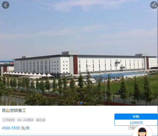 昆山世硕的就业补贴高达12000元,是打工直通车发放就业补贴最多的厂区。