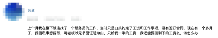 上个月我在楼下饭店找了一个服务员的工作,当时只是口头约定了工资和工作事项,没有签订合同。现在有一个多月了,我因私事想辞职,可老板以无书面证明为由,只给我一半的工资,我还能要回剩下的工资么,该怎么办?