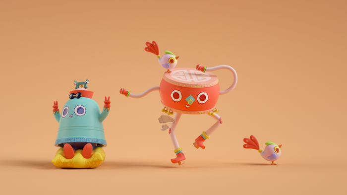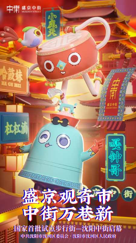 清代官帽、花盆底鞋、满族纹饰……独具特色的清文化符号,配合上拟人的表情,“嘎钟哥”“哈鼓妹”“小凤天”三大“萌物”,作为全新IP形象,已正式亮相,开始为中街代言。
