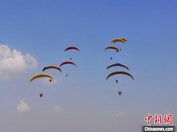 2020中国台安第三届辽河文化旅游节25日启幕。图为滑翔伞表演。 李晛 摄