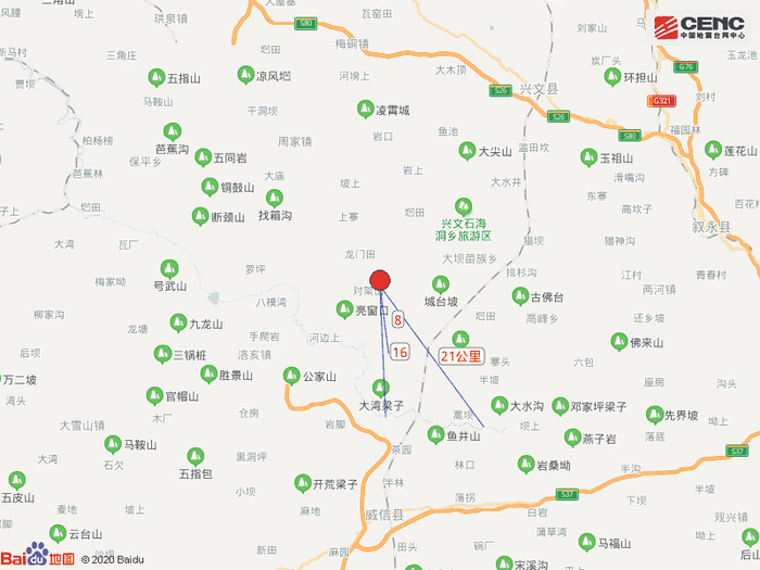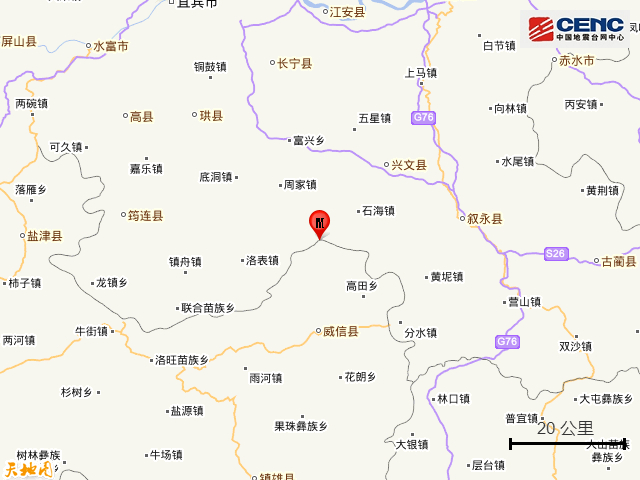 周边县城:震中距威信县28公里、距四川兴文县29公里、距四川叙永县39公里、距四川珙县50公里、距四川筠连县53公里,距四川宜宾市83公里,距重庆市219公里。