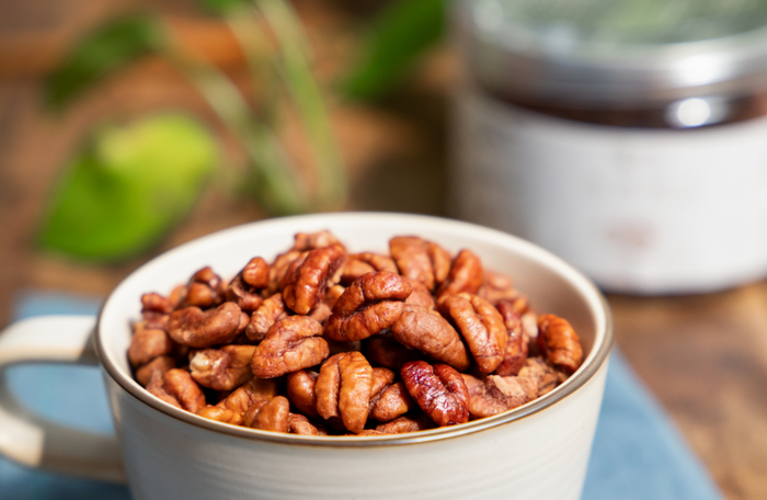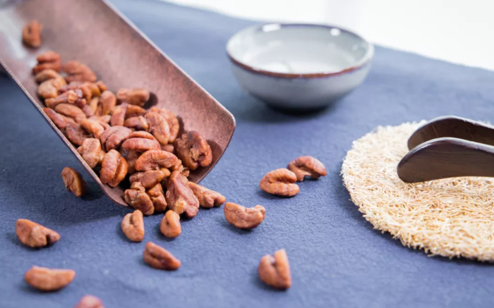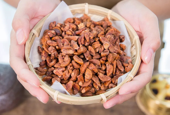 他家的山核桃仁,颜色是亮丽的红棕色,一凑近就能闻到浓郁的核桃香。