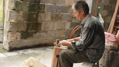 坐在院子里剥核桃的冯师傅