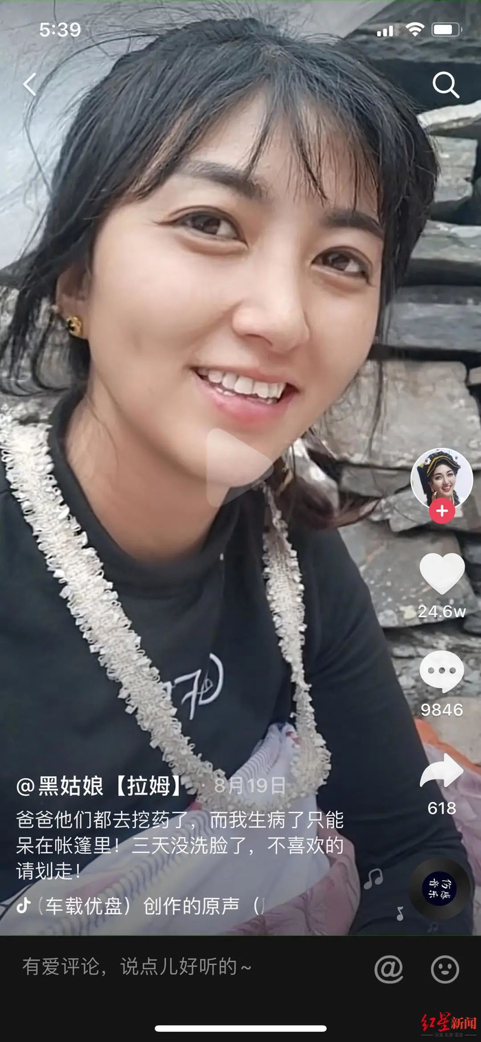 蓝天白云、雪山草地、采药放牧……在拉姆的视频作品里,她和网友们分享阿坝当地的优美景色、风土人情,以及自己在大山里的生活。因为她的笑容和真诚,很多人评价她在视频平台上是“最自然朴实的一个”。