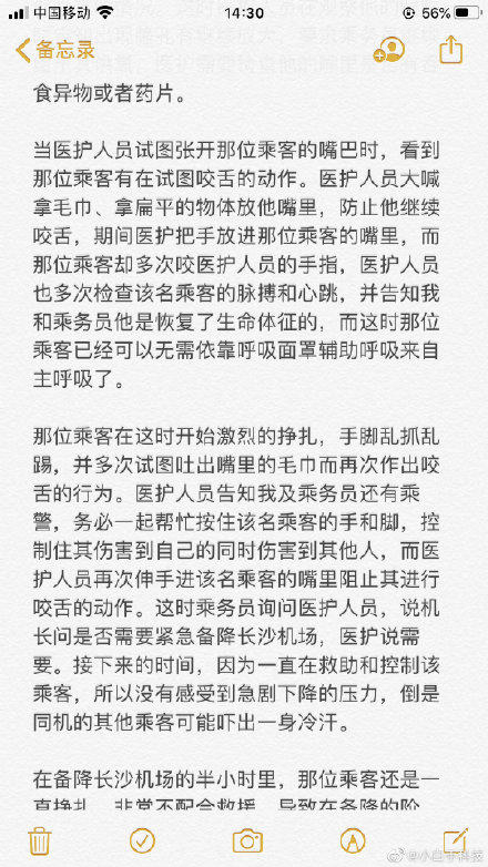 乘坐该航班的乘客赖先生目击了现场救援过程,红星新闻记者也曾对赖先生进行采访。今日,赖先生所在公司的官方微博发布了赖先生回忆讲述现场的详细经过: