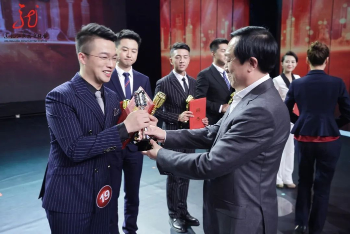 省委宣传部副部长、黑龙江广播电视台党组书记、台长李锡文,黑龙江广播电视台总编辑李皎,为十强选手颁发黑龙江广播电视台聘书及奖杯。