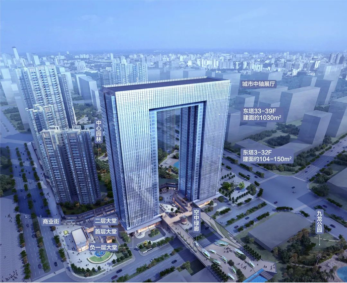 目前在售东塔,主要面积102-148㎡,未来可乘坐观光电梯直达。项目二层设计空中绿廊,直连九龙公园。整个项目预计2023年交楼。