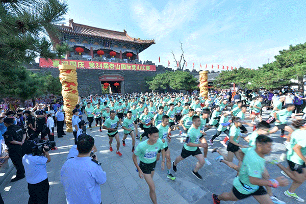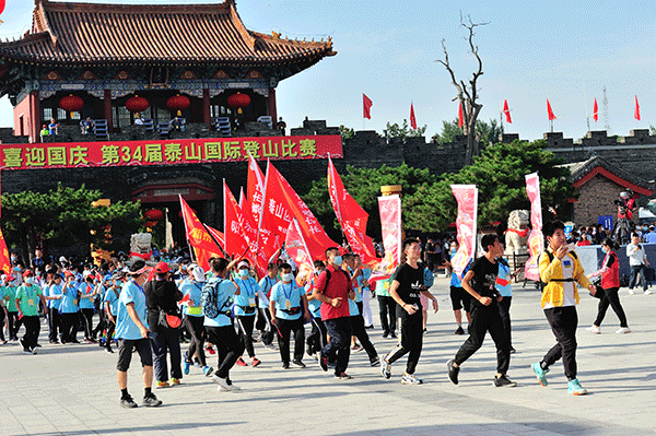 9月6日上午,泰山脚下的岱庙广场上鼓声震天,彩旗飘扬。在嘹亮的《歌唱祖国》歌声中,第34届泰山国际登山比赛暨第25届全国全民健身登泰山徒步活动起跑仪式隆重举行。近3000名选手从岱庙起跑,向位于泰山上的终点奔去。