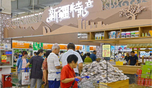 农工商集团帮助新疆叶城县拓展农特产品销售渠道,打通消费扶贫“最后一公里”。农工商集团旗下商品事业部采购创新小组、门店销售等部门根据当地核桃等产品的特点,就产品的物流供应链、包装设计、商品上架等方面反复研究,改进产品包装,加快物流流程,使叶城县优质农特产品上架超市门店。
