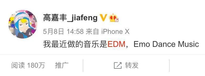 处女作《蹦迪治大病》在网络广泛流传,后又经《即刻电音》中大张伟团队改编,还和“迪斯科女王”张蔷出过一个合唱版本。在嘻哈和R&B音乐中,高嘉丰也以rapper或制作人的形式,与功夫胖、直火帮、血男孩、9m88等艺人合作。