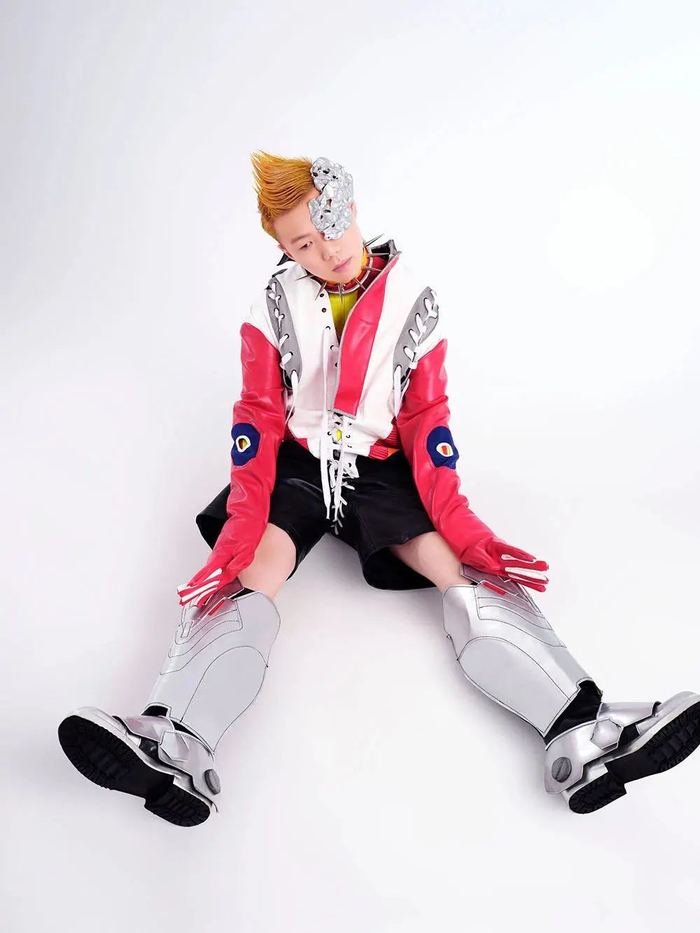 在今年新说唱的海选中,jiafeng还原了《幻爱锐舞会 Emotional Dance Music》封面内的造型。这张专辑的封面也高度仿效了PlayStation游戏的风格,与电玩跳舞毯的主题相呼应。让我们期待节目播出后jiafeng的表演!