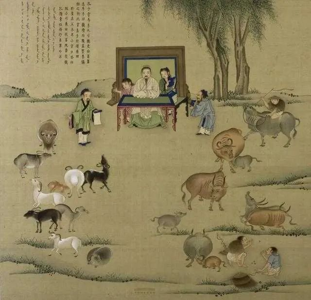 清《孔子世家图册》之“职司乘田”中国国家博物馆藏