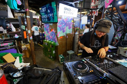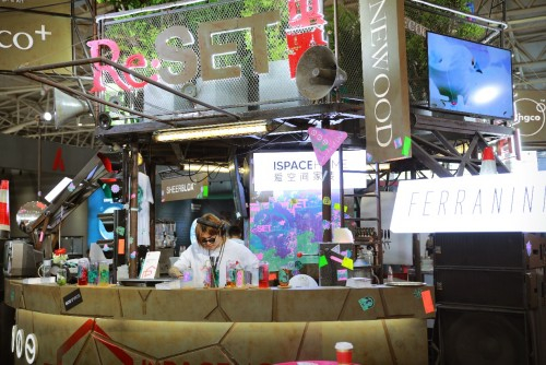 在“设计中国北京”的展会现场,由爱空间标准化家装与madeofDNA、三生ONEWOOD联合策划发起的“RESET疫情后的岛” 艺术装置大放异彩,展位位于展区各主干路交汇处的核心中央区,所在位置十分显眼。圆形的做旧吧台、钢铁的拦网、斑驳的铁皮招牌、顶部茂盛的绿色丛林结合错落的金属元素,搭配现场的DJ电子音乐,后现代蒸汽朋克的奇妙观感引得现场观众持续围观拍照。
