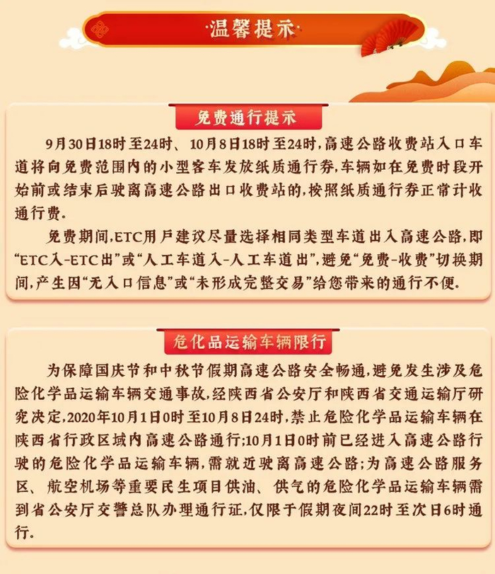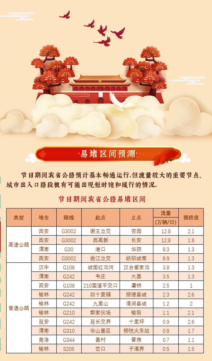 陕西省公安厅交警总队发布双节出行预警及安全提示