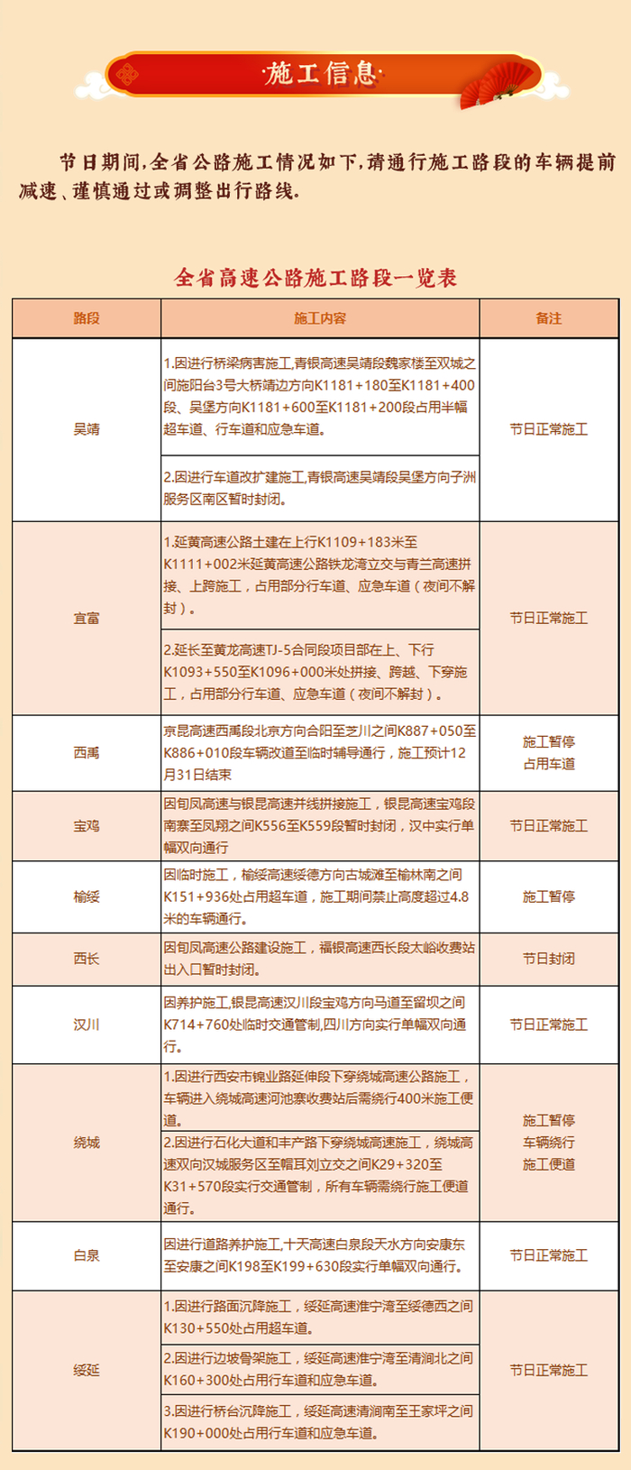 5、京昆高速新筑至富平段――经S106、G210分流绕行。