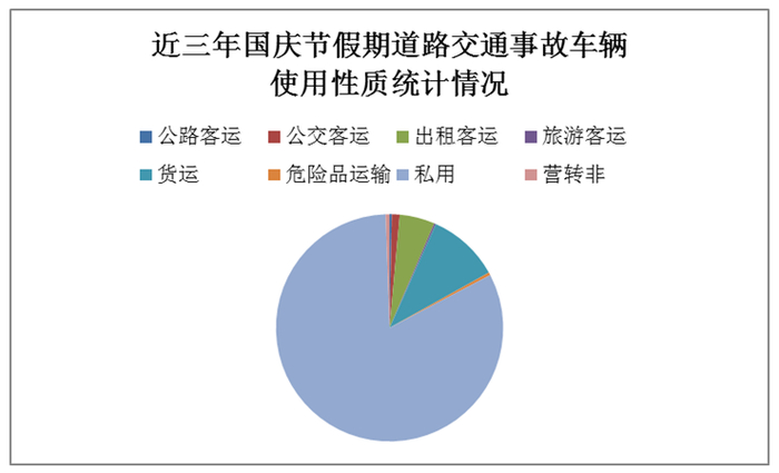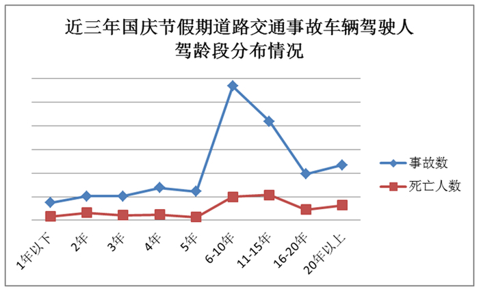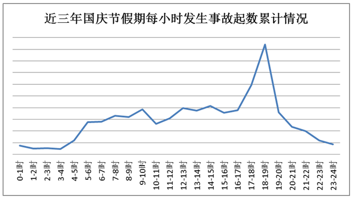 近三年国庆节假期,傍晚17-19时为全省事故最高发时段,累计发生的事故总数和死亡人数,分别占总数的22.05%和24.53%;普通公路是道路交通事故的高发道路类型,累计发生的事故起数和死亡人数,分别占总数的59.17%和66.36%;6-10年驾龄的驾驶人是发生道路交通事故的主要群体,这一驾龄段内的驾驶人累计发生的事故起数和死亡人数,分别占总数的29.07%和23.47%;私用车辆仍是造成道路交通事故的主要车型,私用车辆(含摩托车)发生的事故起数和死亡人数,分别占总数的10.01%和16.22%;机动车驾驶人的交通违法行为共引发的事故起数和死亡人数,分别占总数83.67%和82.56%,其中:未按规定让行、无证驾驶、逆行违法行为占到前三位。