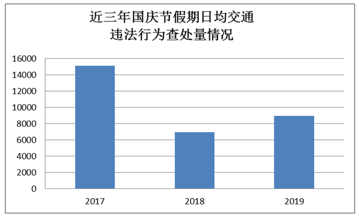近三年国庆节假期,全省共查处各类交通违法行为217321起,日平均查处交通违法行为9878.2起。共查处酒后驾驶违法行为659起。其中,饮酒驾驶603起,醉酒驾驶56起。除酒驾醉驾外,超速驾驶、货车超载、无证驾驶查处量也较高。