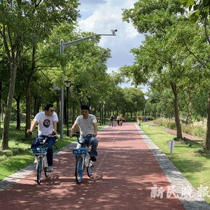 都市白领来了,一身炫酷的骑行装、驾驭着专业级单车,从临水平台的骑行栈道一路飙车下来,点缀了桥上的风景,也装饰了滨江的色彩。有的人则什么也不想干,只想来“静静”,带来一个充气的小沙发,找个阴凉处,翻翻书、打个盹、 做个美梦。骑车、步行累了,造型优美的“望江驿”则为人们提供了歇脚的地方。