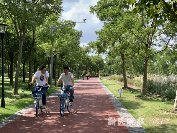 前滩休闲公园北起小黄浦,南至上中路隧道,东起前滩大道,西至黄浦江,总面积约26.64万平方米,沿黄浦江岸线长度约1778米。它是前滩地区三大滨江绿地中首座开放的公园,既为都市居民提供多样化的生活体验场所,又为游客们营造了极佳的休闲运动环境。只见在公园入口处,停放了齐整的共享单车,骑行道、步行道、亲水平台,高低错落,总有一款适合你。虽然还不到金秋十月,但空气里隐隐飘来桂花香气,原来早桂已悄然绽放,等待游客们闻香而来。
