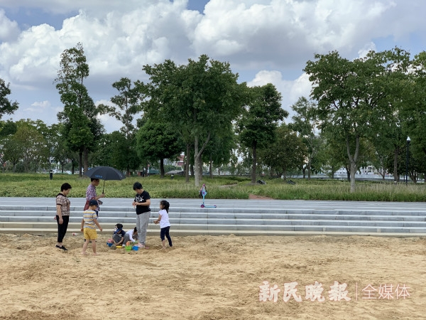 孩子们来了,在滨江的亲水平台上如鱼得水地穿梭奔跑,不时响起的轮船汽笛声常常引起他们的欢呼雀跃。黄金沙坑、儿童乐园也是他们的天堂,一把铲子一个桶,就能建造起专属的王国,足以让他们度过完美的一天。