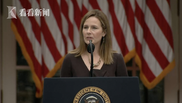 当地时间9月26日,白宫玫瑰园中,“靴子落地”。美国传奇最高法院大法官,露丝·巴德·金斯伯格病逝刚一个星期,特朗普便宣布提名埃米·科妮·巴雷特填补空缺。如获批准,巴雷特将成为特朗普上台后任命的第三位最高法院大法官、美国史上第五位女性大法官、目前最高法院最年轻的大法官。