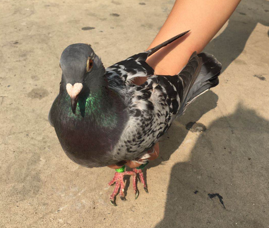 市民捡到受伤的赛鸽