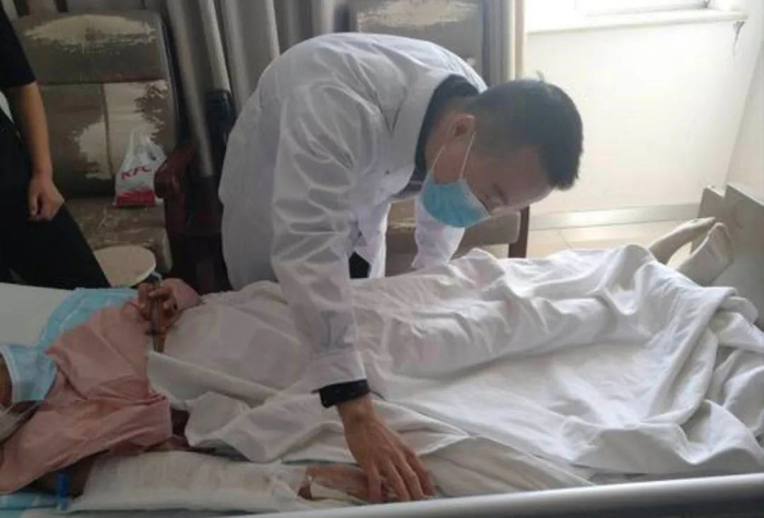 梁久龙医生查看女孩的伤势。