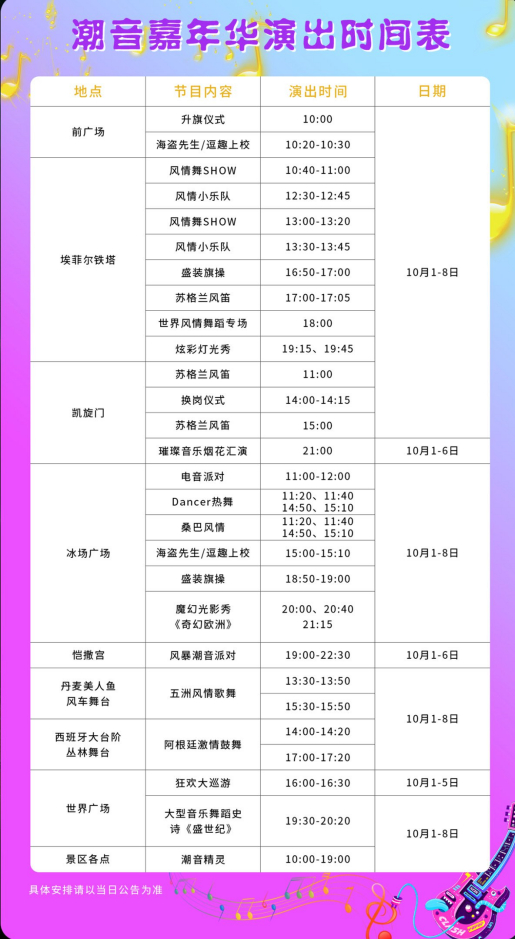 今年的wow潮音嘉年华活动丰富,看点多多。电音风暴、嘻哈潮玩、风情舞show、美妆迅游、潮酷行为艺术、烟花灯光show、动感亲子游戏。丰富体验,等你来打卡。