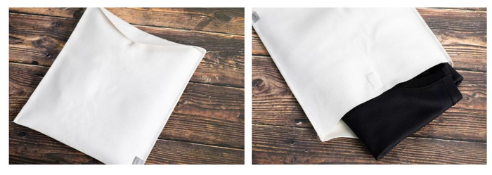 细节处也十分精致,皮质纹理的衣服外包装袋,瞬间提升质感。毕竟在大家都还用塑料包装的时候,只要用心一点,就能赢。
