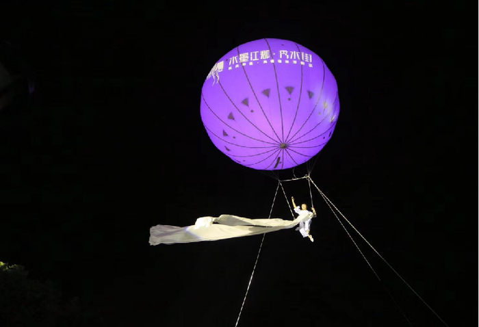 皎皎天上月,圆圆逢佳期,古时一段嫦娥奔月的传说,为中秋月圆带来无尽地想象。本次音乐喷泉专场演出,将这个美好的传说搬到你的眼前,嫦娥飞天表演与水幕喷泉完美融合,上演一场仙气十足的大型实景真人嫦娥奔月飞天秀。